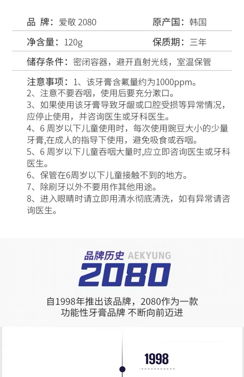 《贸》韩国爱敬2080牙博士清除牙垢牙膏 清新口气 美白抗敏牙膏 含氟 125g
