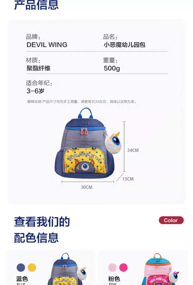 《贸》韩国DEVILWING小恶魔男女孩4儿童双肩背包3-7岁幼儿园5可爱书包DW033