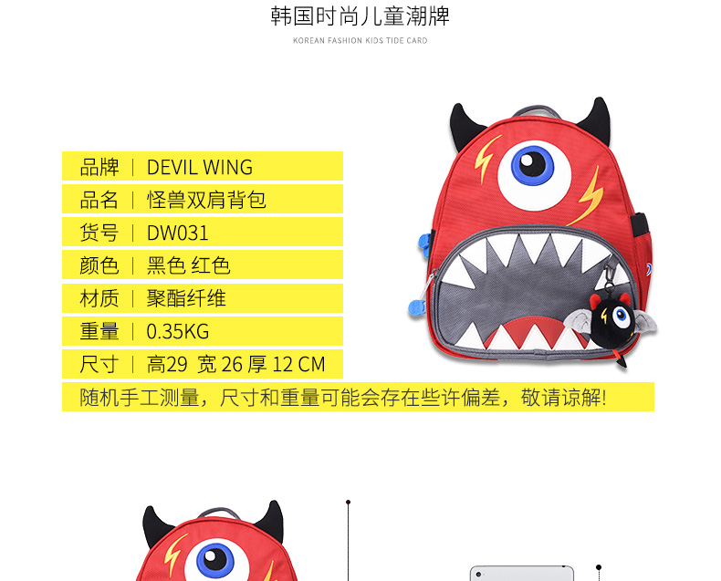 《贸》韩国devilwing小恶魔3-5岁男女孩幼儿园书包可爱儿童书包双肩背包DW031
