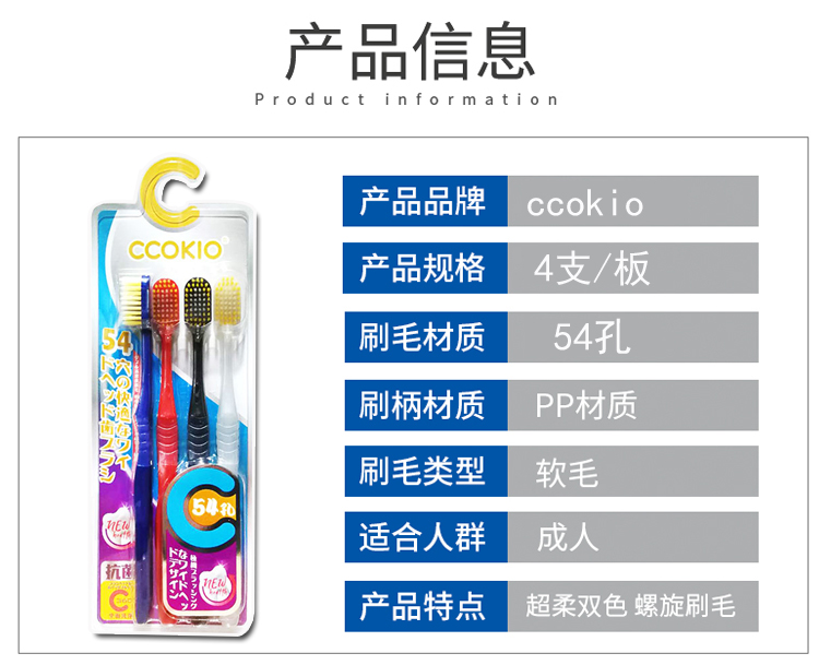 日本 CCOKIO酷优客 54孔宽头成人超细软毛牙刷 4支装