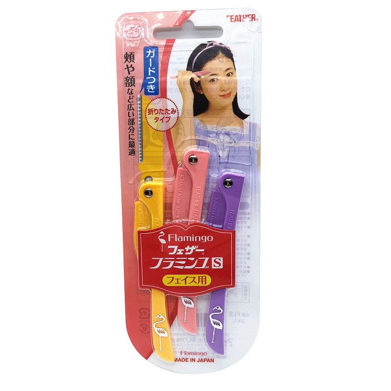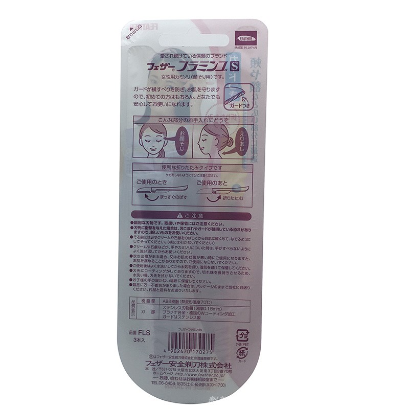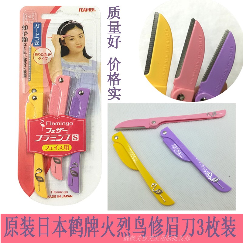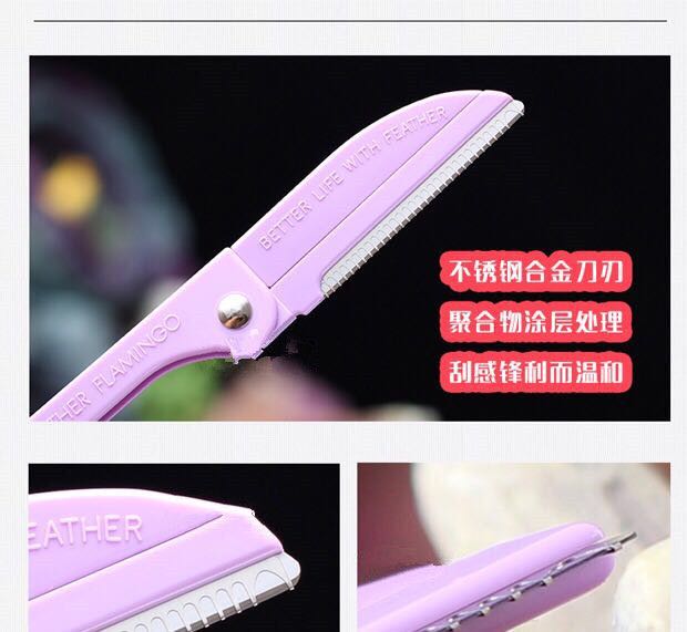 日本feather折叠羽毛修眉刀 鹤牌不锈钢折叠刮眉刀 3支装