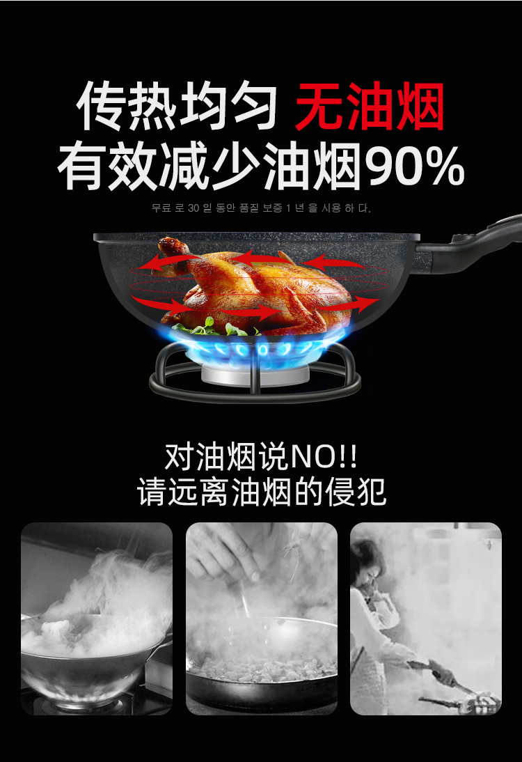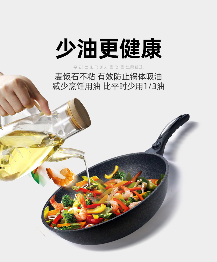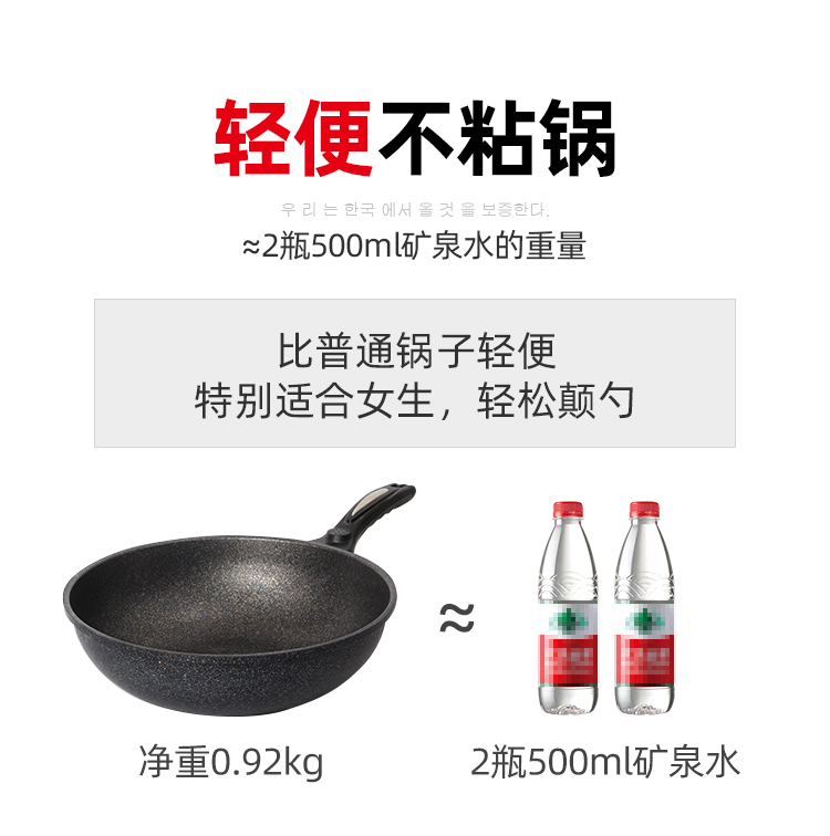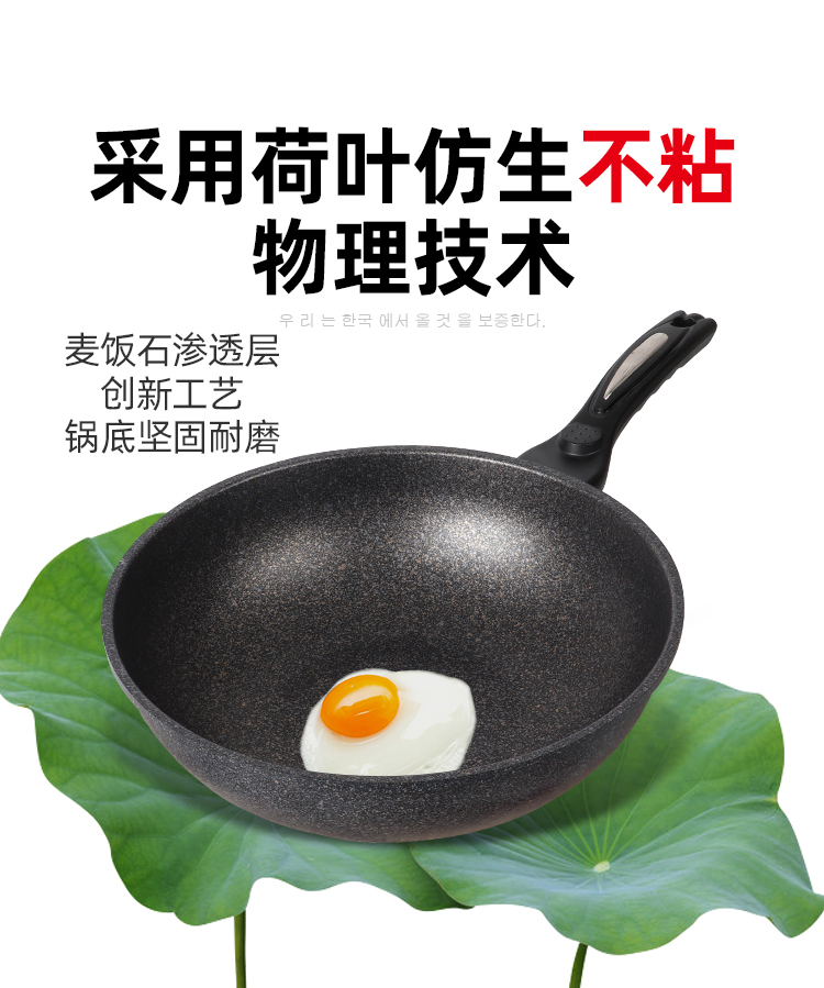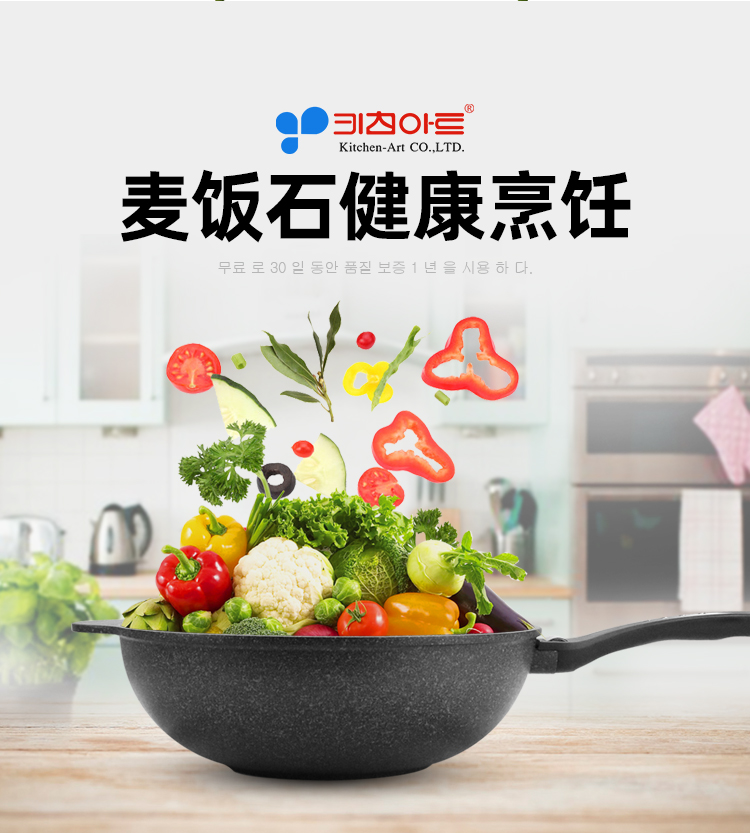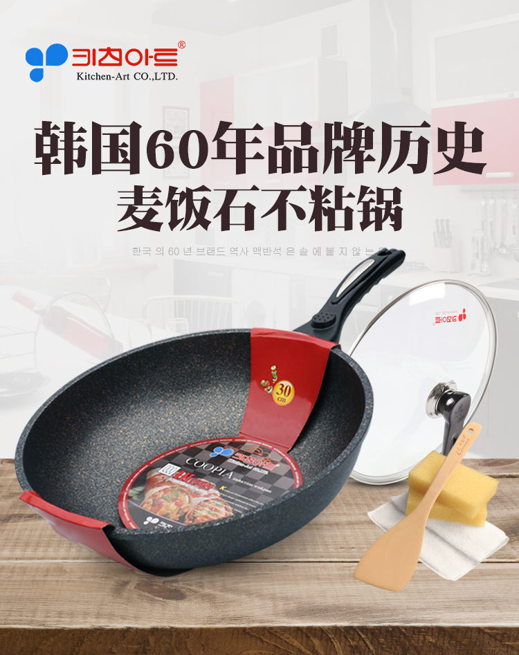 《贸》韩国原装进口正品kitchenart麦饭石不粘锅炒锅家用平底不沾麦石锅30cm