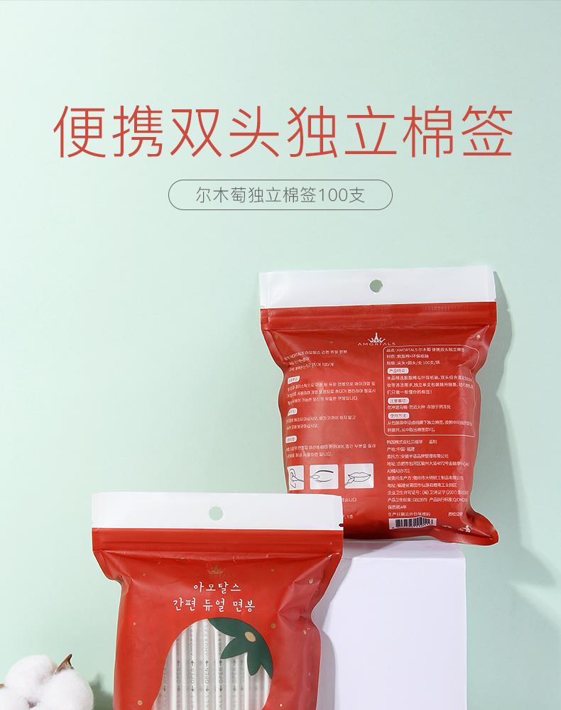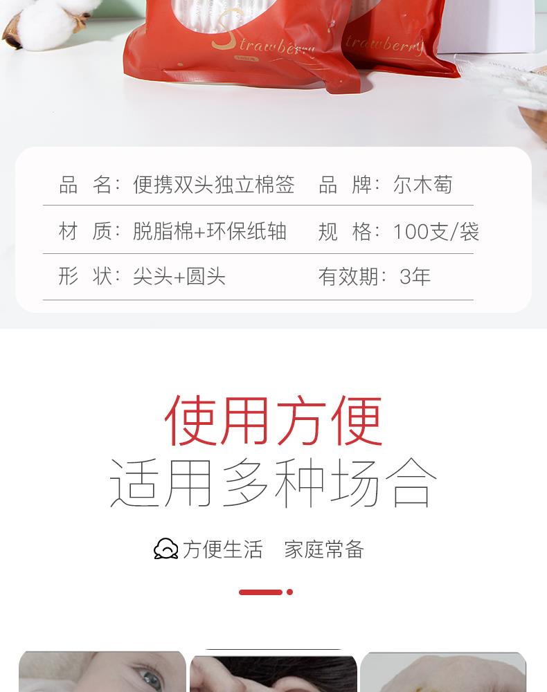 尔木萄棉签棒一次性独立袋装婴儿掏耳朵化妆清洁专用 100支装(临期特价)