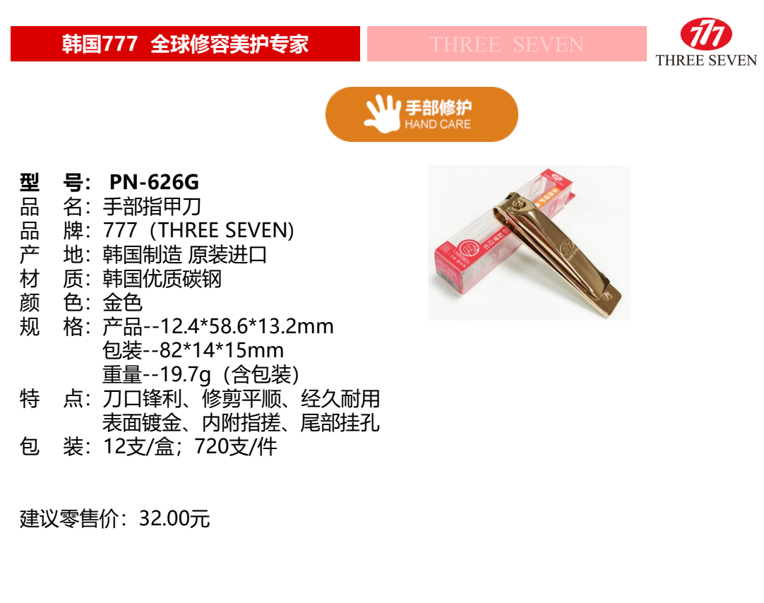 《贸》韩国777原装正品指甲刀 斜角指甲钳指甲剪特殊部位用PN-118G金色