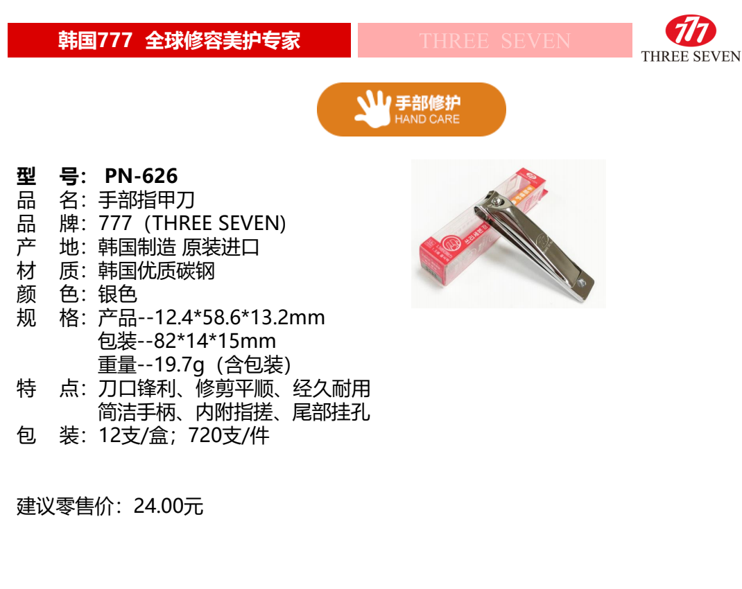 《贸》韩国777原装正品指甲刀 指甲钳指甲剪美甲工具PN-626银色