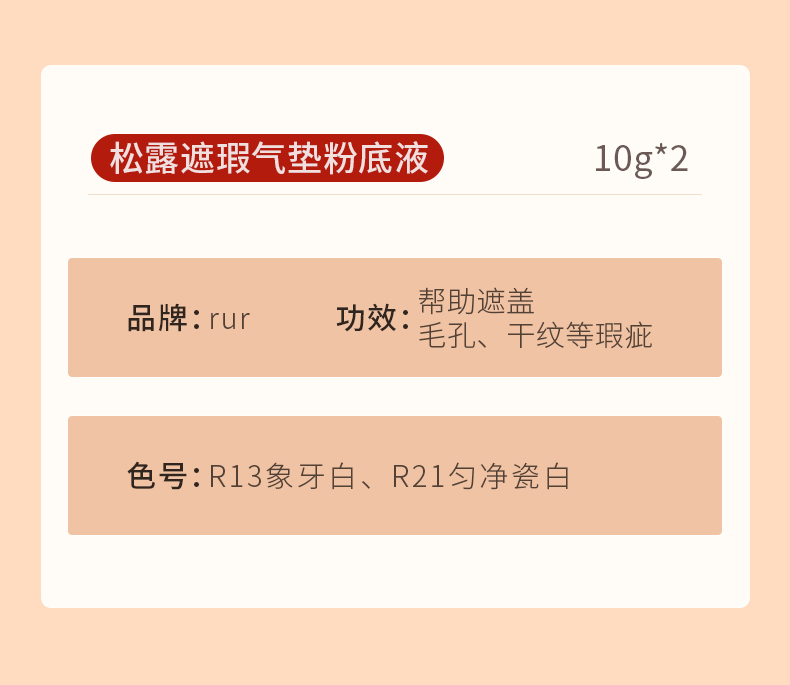 临期 rur 松露透气持妆粉底液 细腻遮瑕 三色 30g