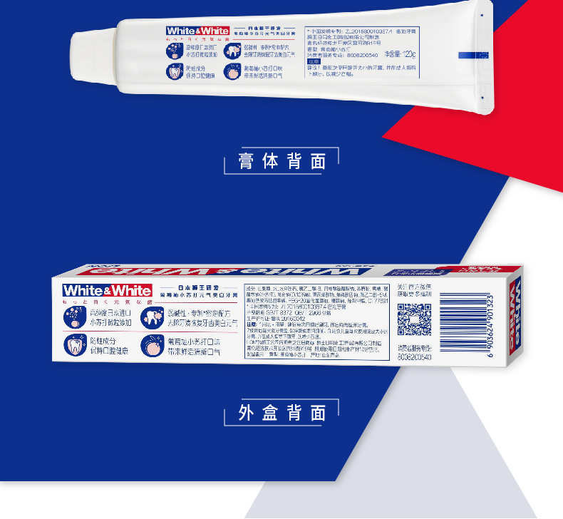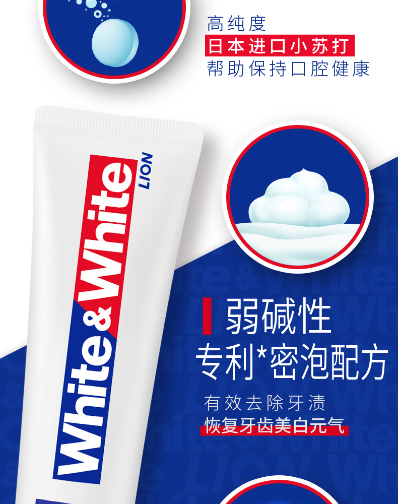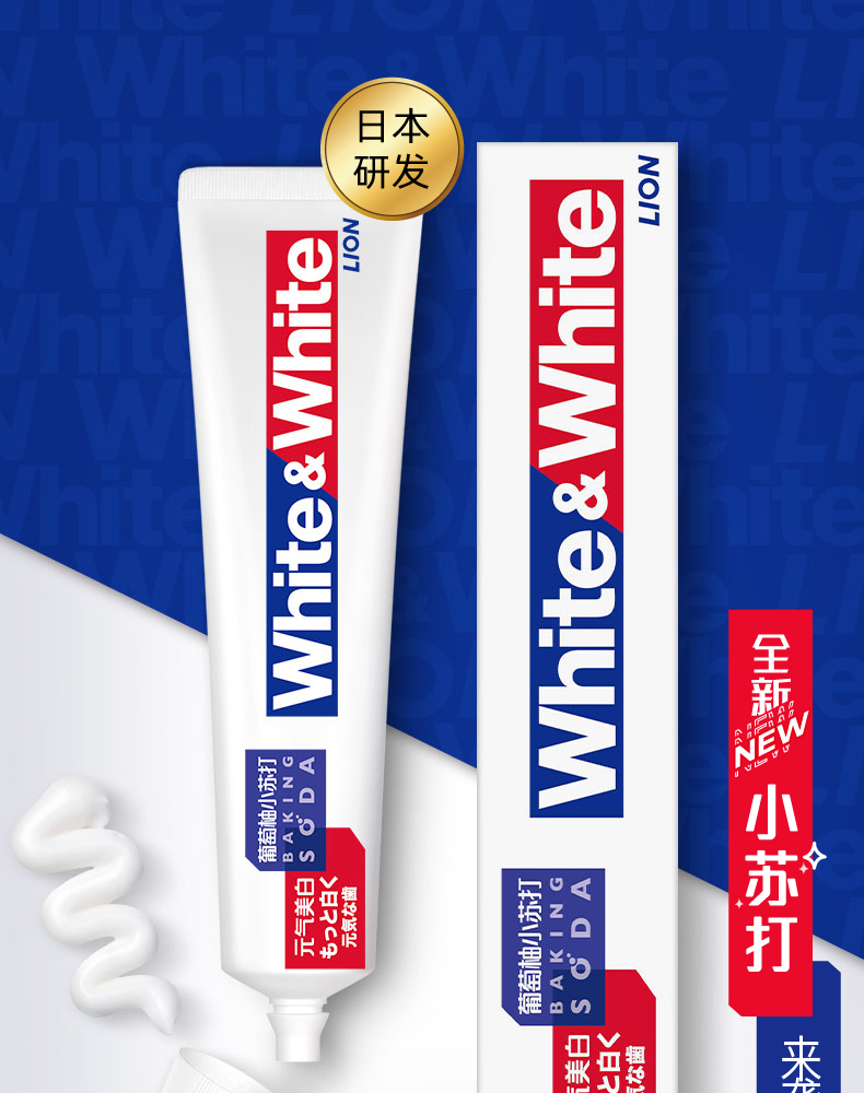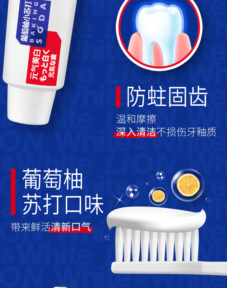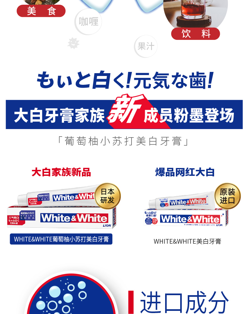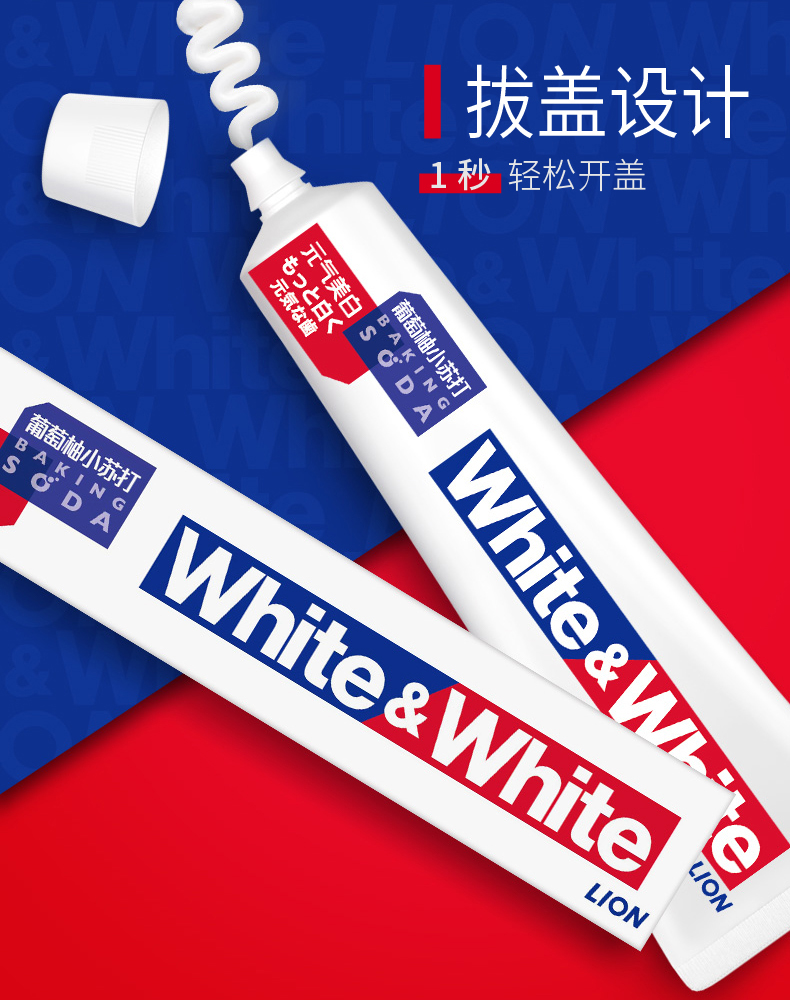 狮王White﹠White大白葡萄柚小苏打美白口气清新牙膏 120g