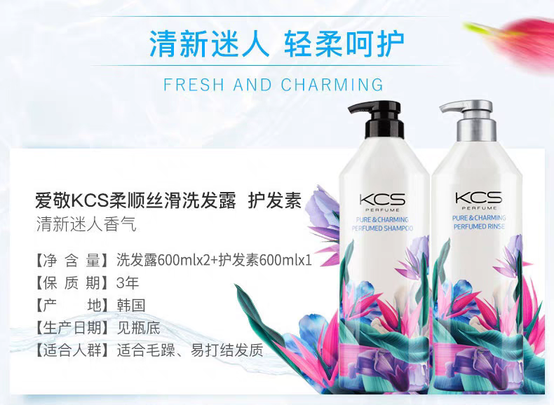 韩国进口爱敬可希丝KCS柔顺丝滑香氛洗发水护发素套装清爽洗护套