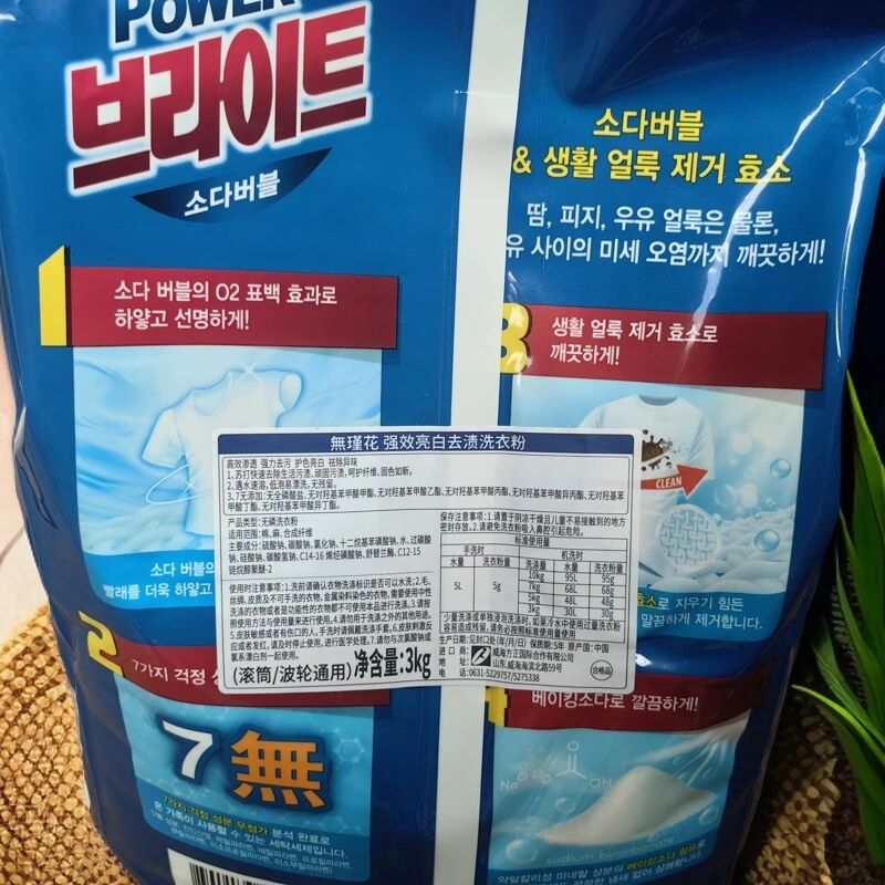 韩国进口無瑾花护色亮白强力去污去渍洗衣粉滚筒波轮通用小苏打