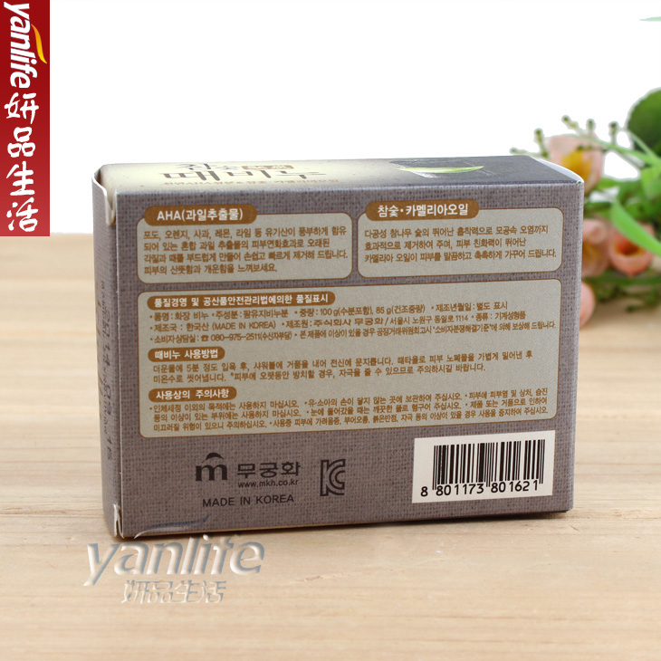 品名 韩国吴琼花木炭去灰皂 产地 韩国 功能 洗澡不用搓!去角质! 规格 100g 宝贝介绍 棕榈油油脂香皂粉、水果成分(果酸)和坚炭、冬柏树油提取物。 2种包装 批次不同 包装不同 包装随机发