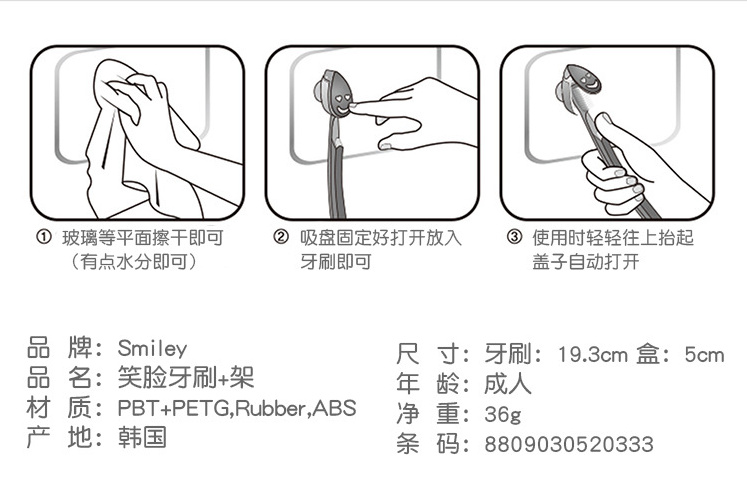 韩国最新流行的护齿保健牙刷,微细刷毛深入牙缝,刷牙清洁保健效果更好!超炫、晶透的一体树脂刷柄,更显高贵,握感舒适!质量上乘,独立包装,每一支均赠一个笑脸吸盘牙刷架,保护刷头面表不被灰尘侵害!