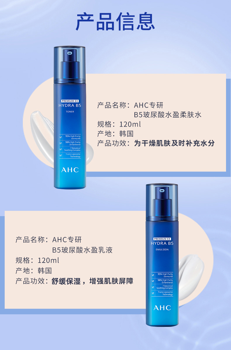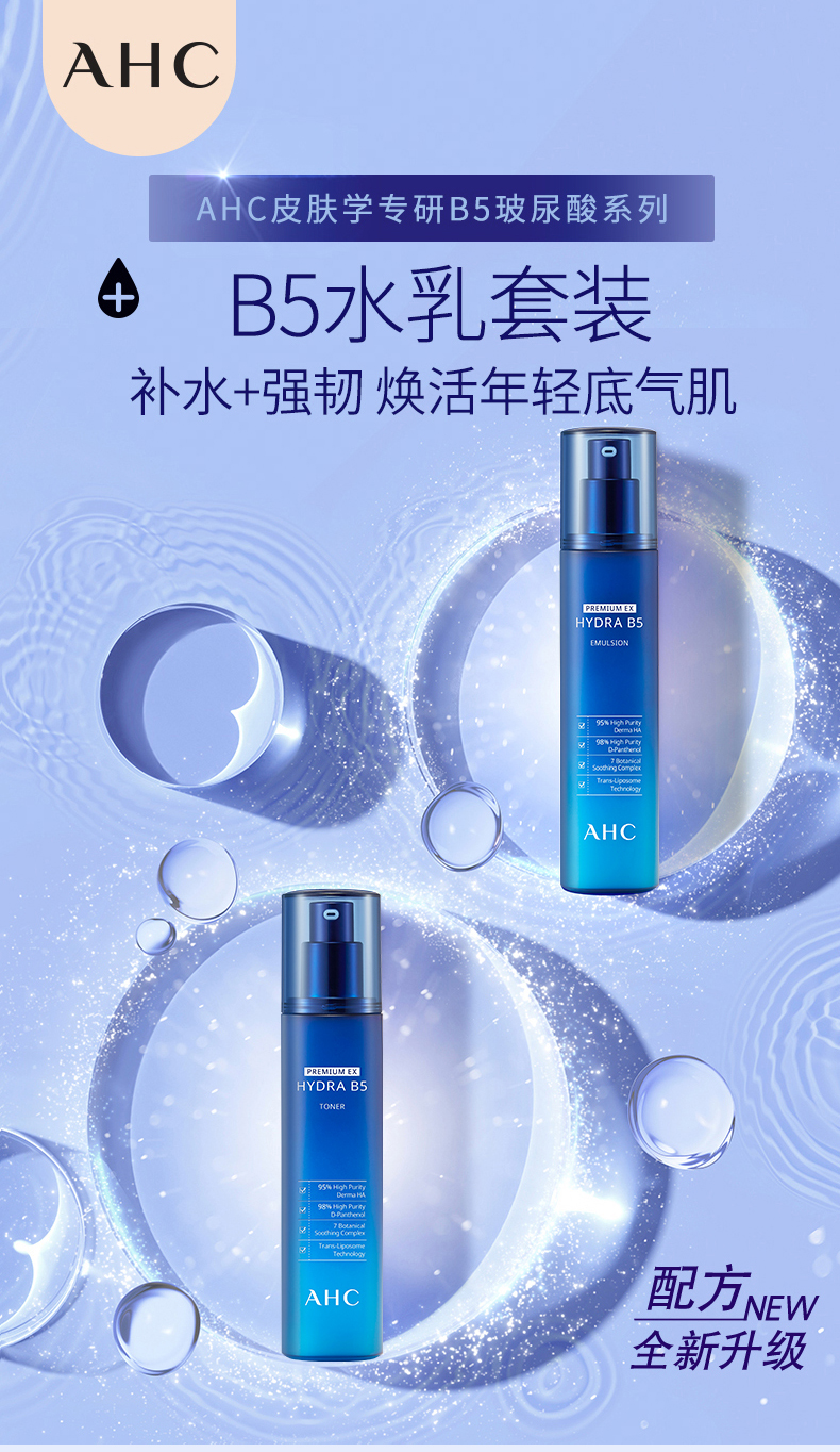 韩国 AHC B5玻尿酸爽肤水乳液套装 补水保湿 140ML*2